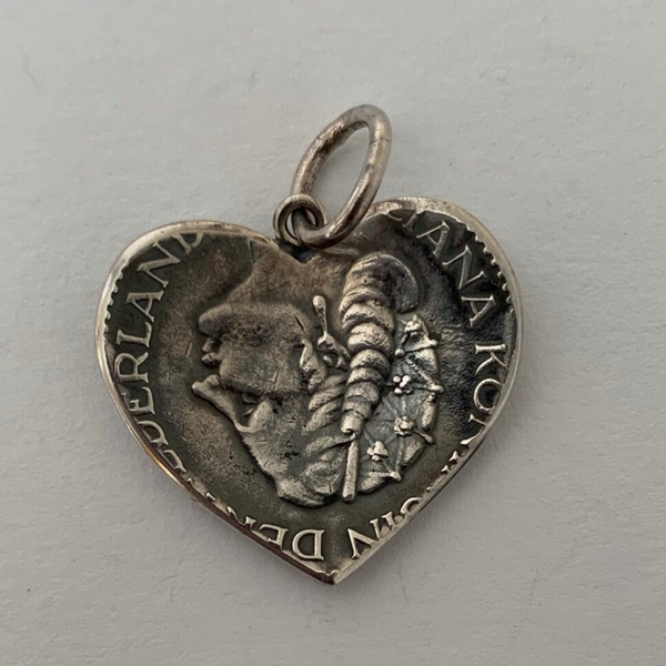 Deze gulden hart met vintage look is gemaakt van een zilveren gulden.Het hartje heeft een gepolijste facet rand.Het hangertje heeft een flauwe bolling.Het hangertje is zonder ketting.