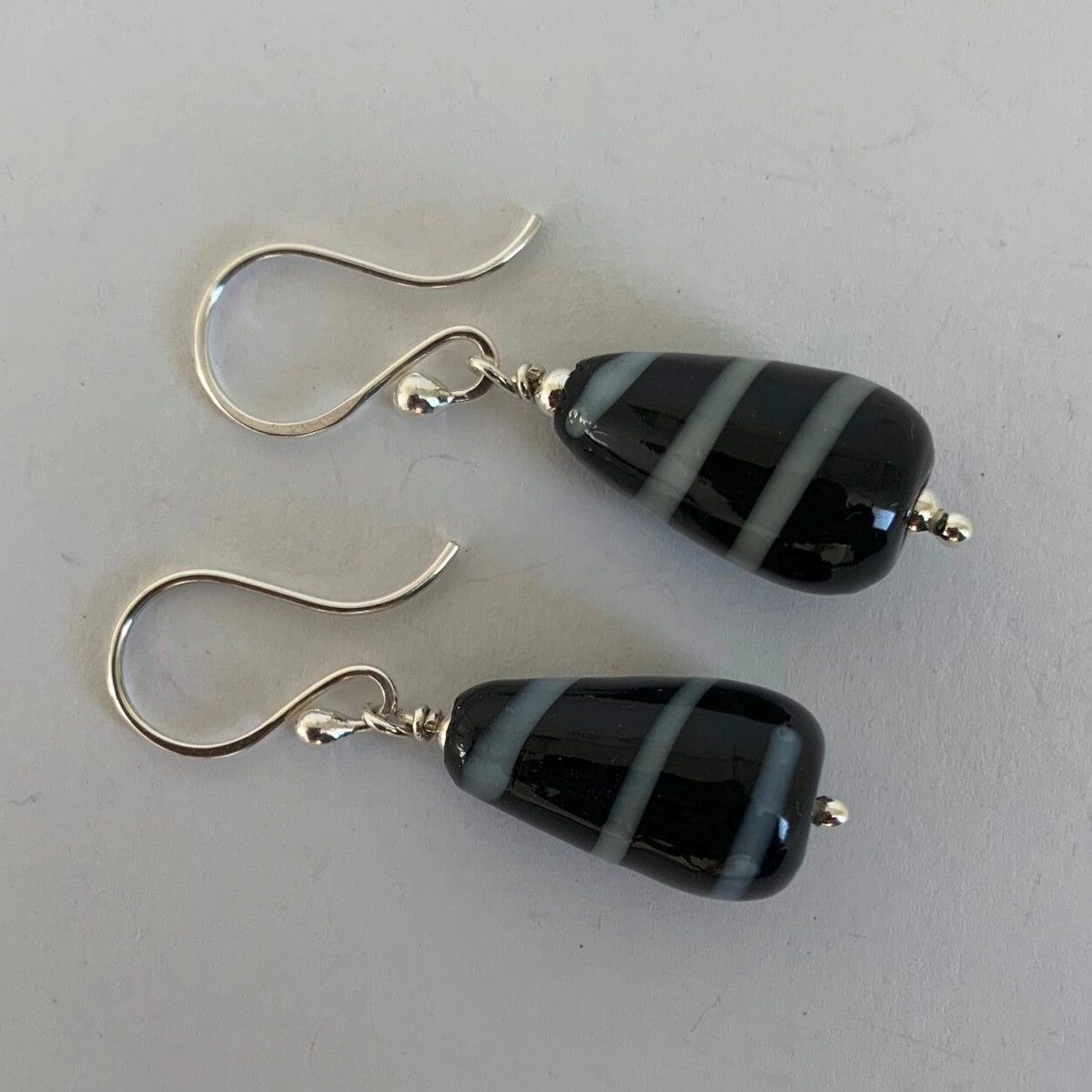 Zilveren oorbellen met handgemaakte kromanti kralen.