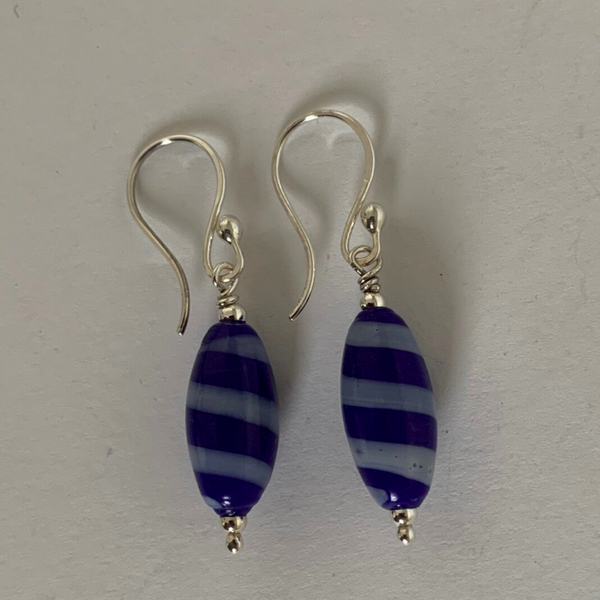 I3 - Surinaamse oorhaken met blauw/ witte kromanti kralen