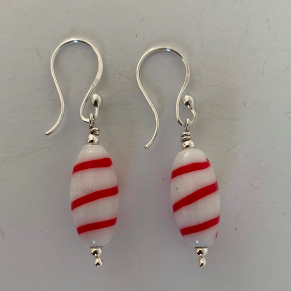 Surinaamse oorhaken met wit/ rode kromanti kralen.