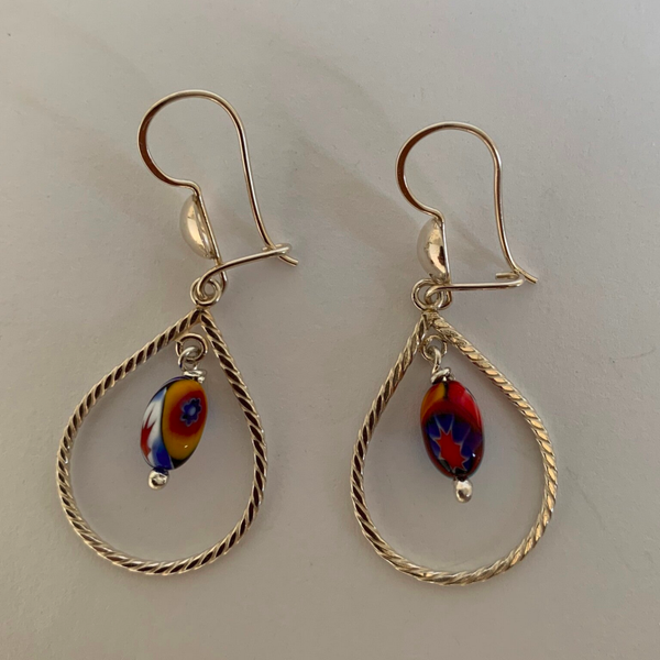 Deze Surinaamse zilveren druppel oorbellen met alakondre kraal zijn gemaakt van gourmet draad.