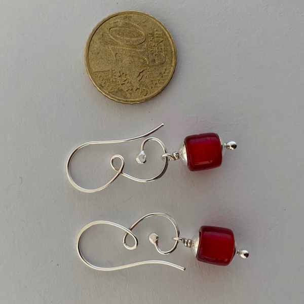 Een linker en een rechter oorbel. Met rode ingi boka kralen.