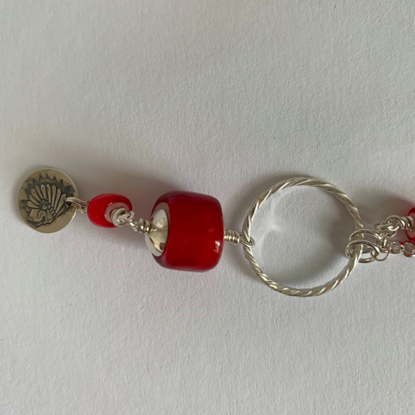 Deze verfijnde zilveren ketting is voorzien van prachtige, rode Ingi Boka kralen, die staan voor bescherming en spirituele kracht, en Kromanti kralen, die symbool staan voor moed en voorouderlijke wijsheid. Deze combinatie zorgt voor een sieraad met een rijke, culturele en spirituele betekenis. Een perfecte keuze voor wie op zoek is naar een uniek en betekenisvol sieraad.
